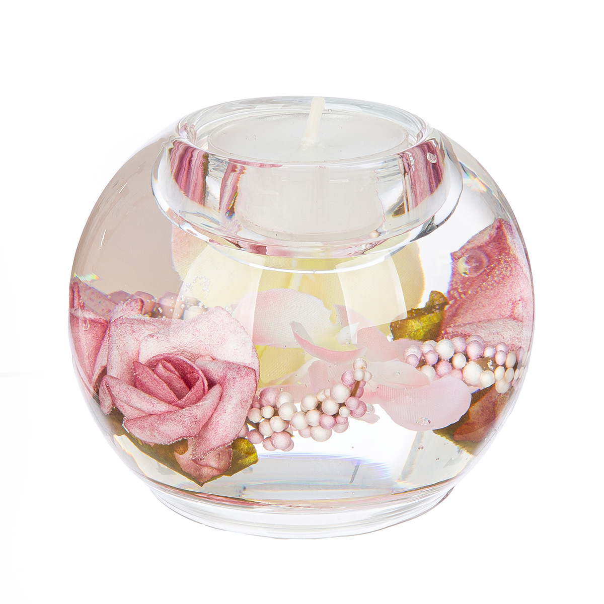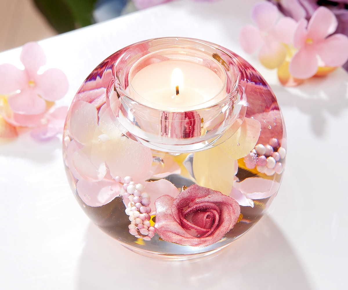 En résine avec inclusion de fleurs artificielles. Pour bougies chauffe-plat.