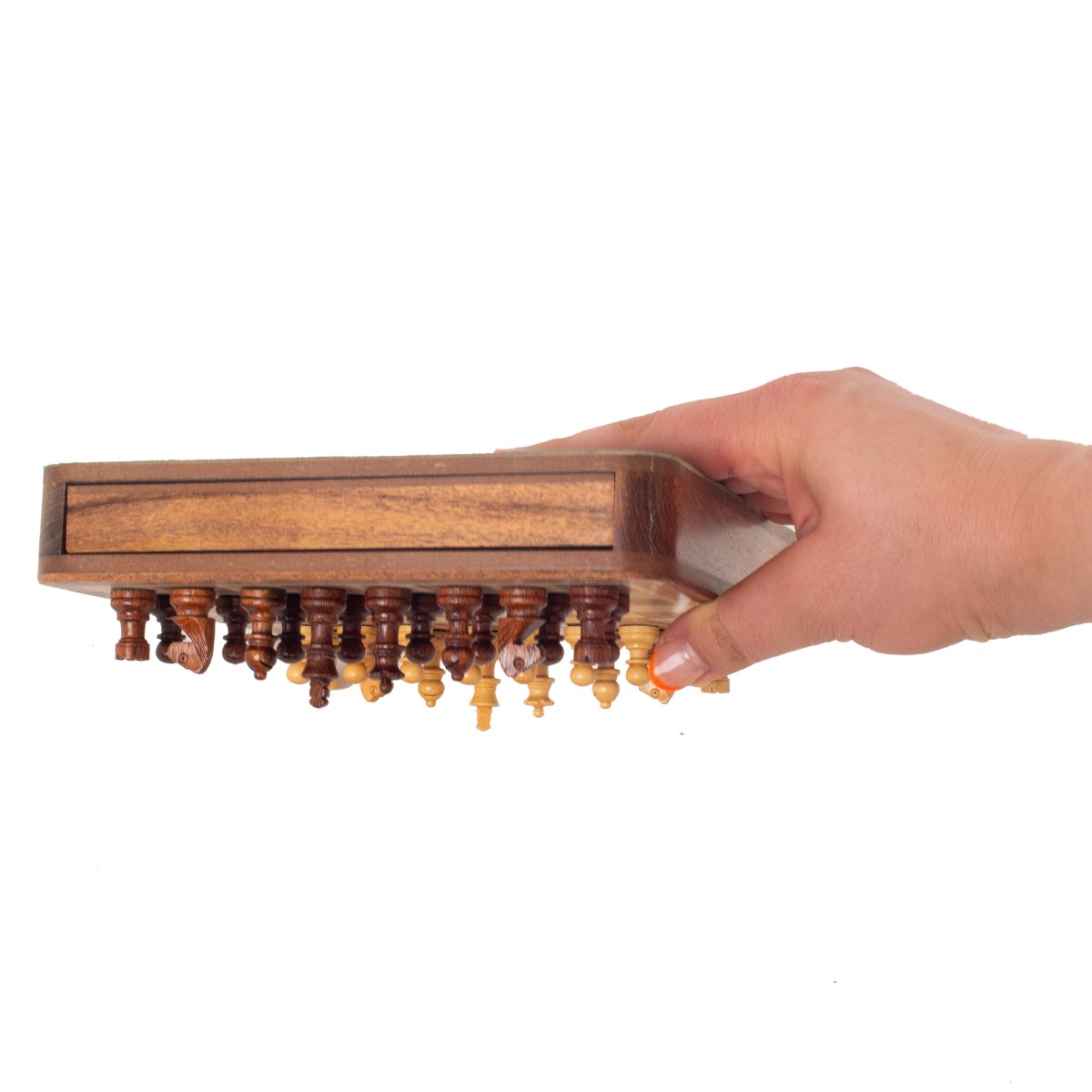 Pièces aimantées rangées dans un compartiment tiroir recouvert de velours pour les protéger.