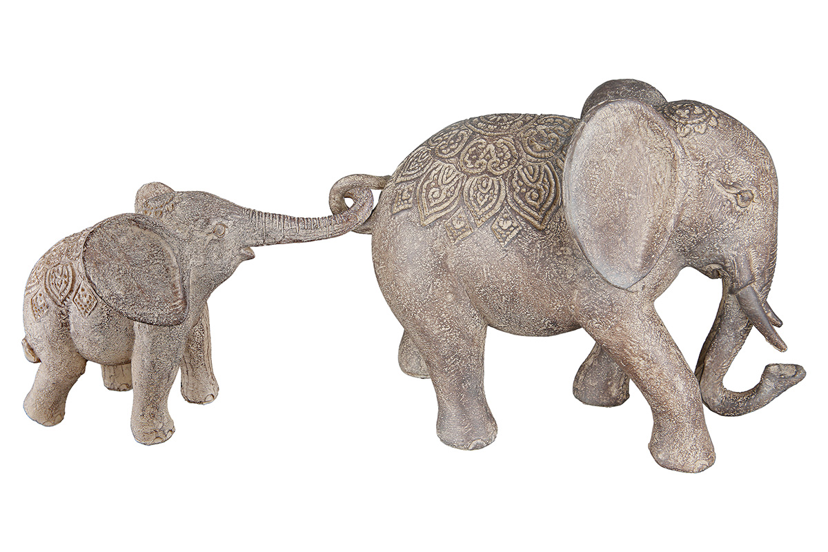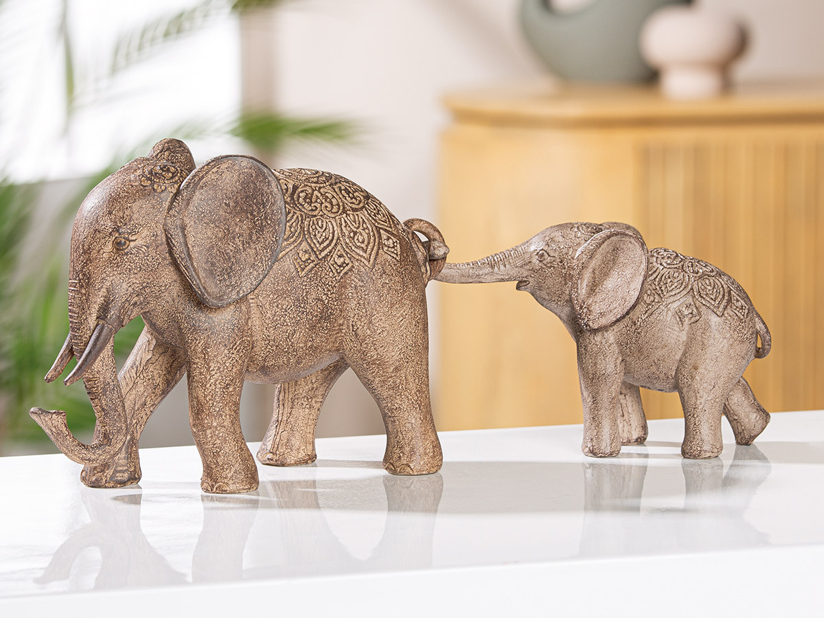 Figurines d’éléphant adulte et son éléphanteau le tenant.