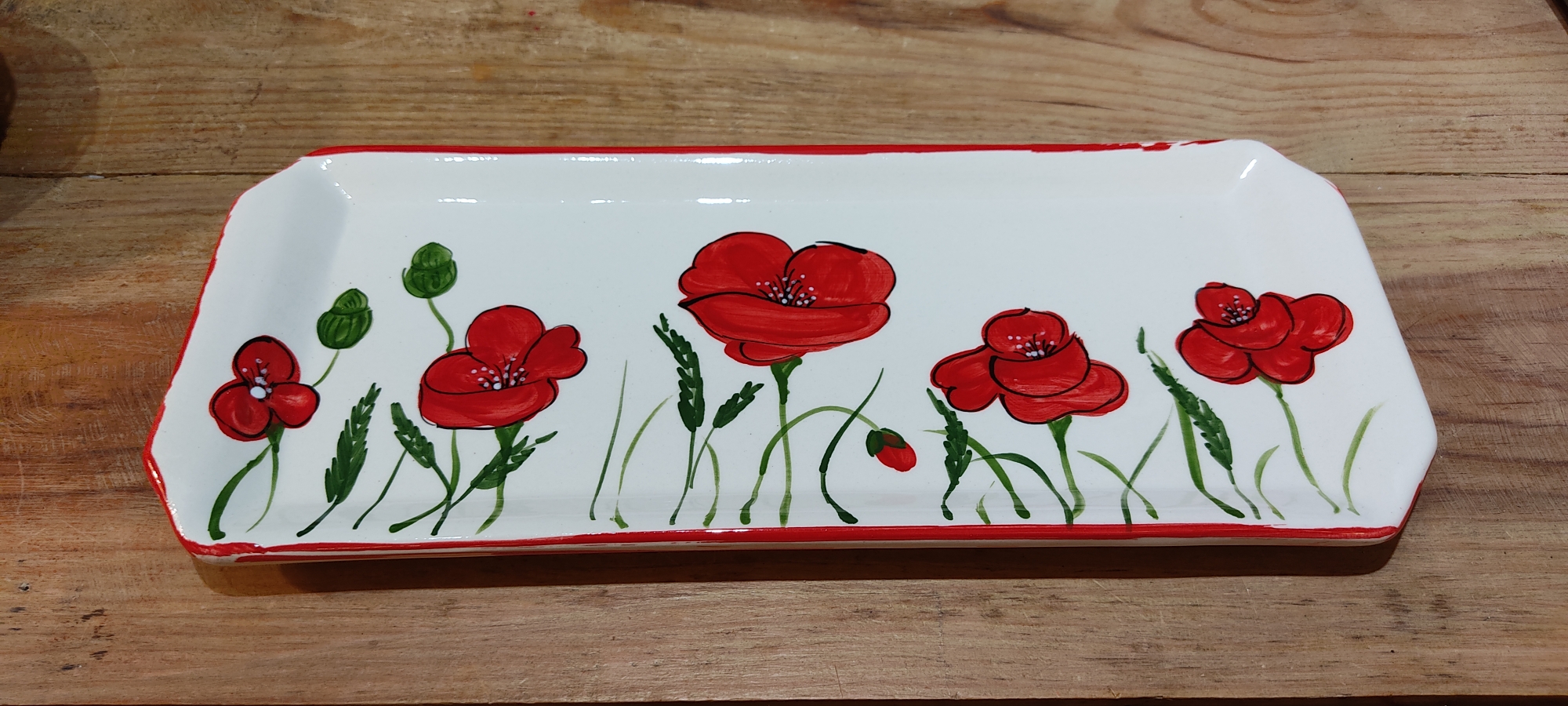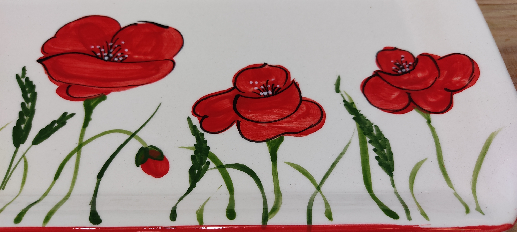 Céramique de fabrication artisanale, peinte à la main, décor coquelicots.