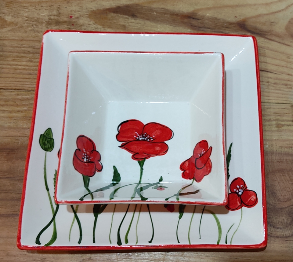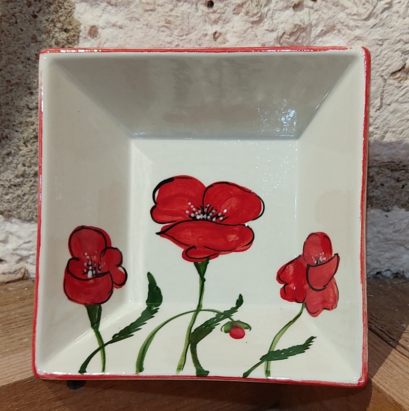 Céramique de fabrication artisanale, peinte à la main, décor coquelicots.