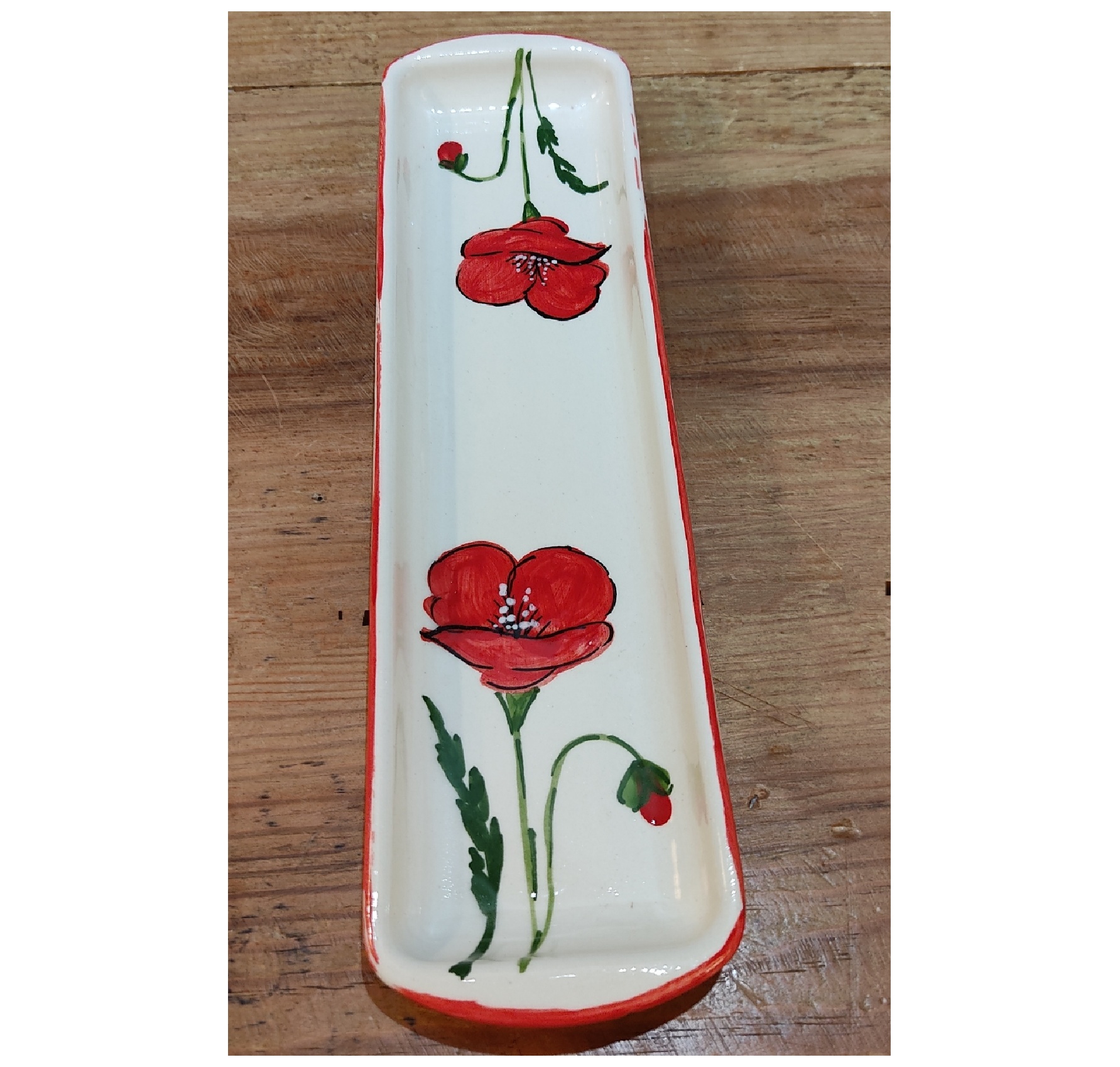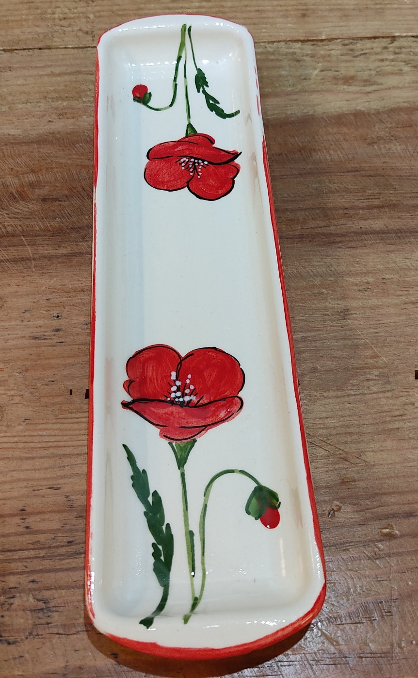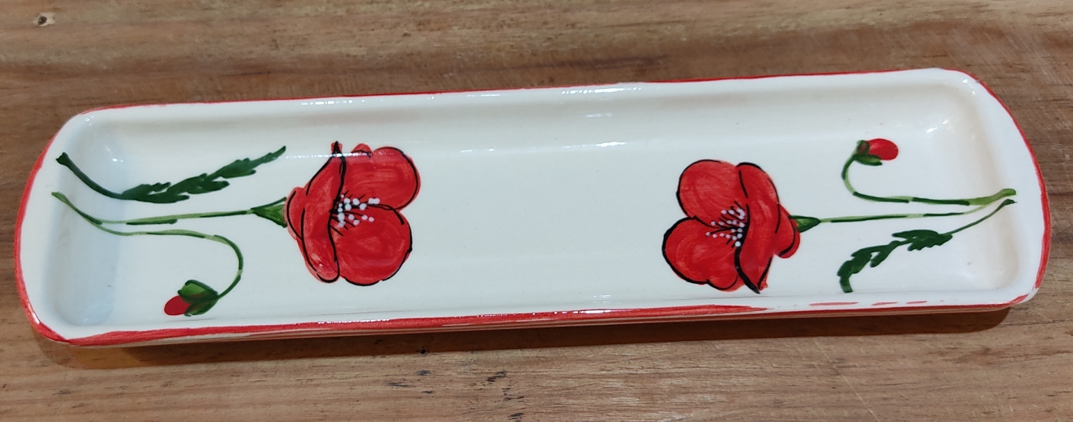 Céramique de fabrication artisanale, peinte à la main, décor coquelicots.