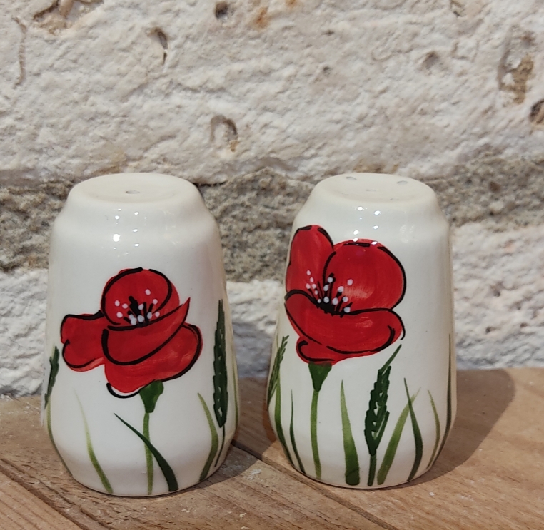 Céramique de fabrication artisanale, peinte à la main, décor coquelicots.