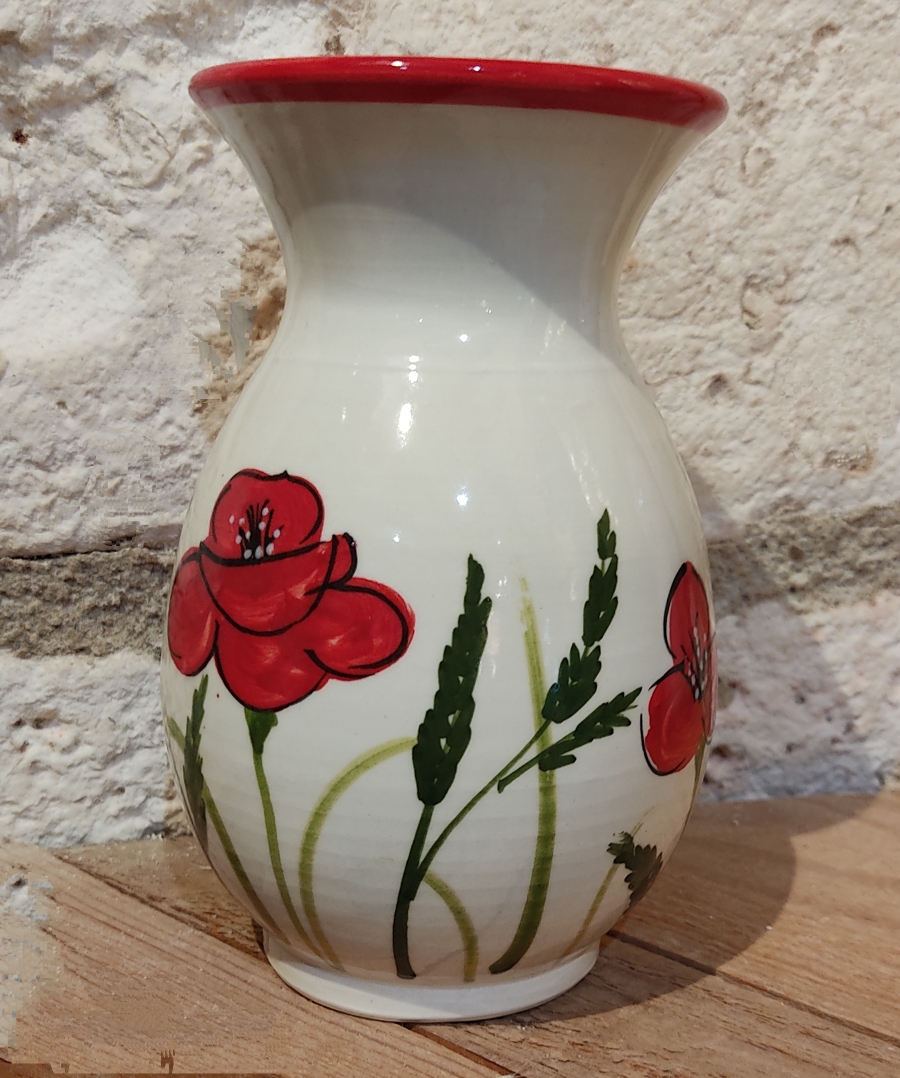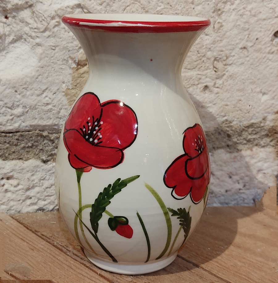 Céramique de fabrication artisanale, peinte à la main, décor coquelicots.
