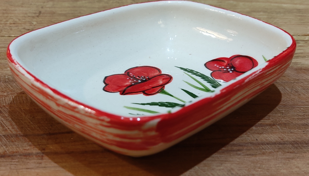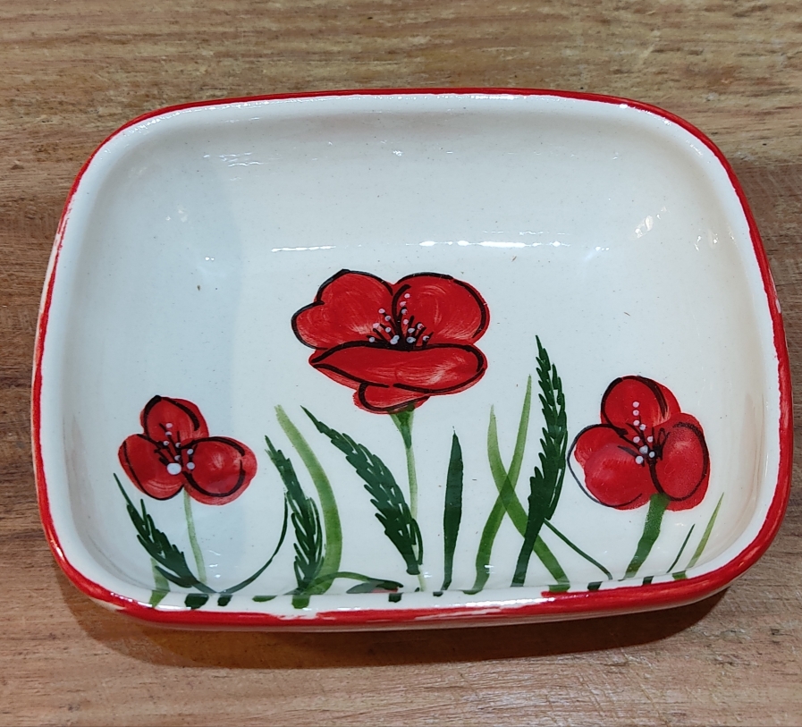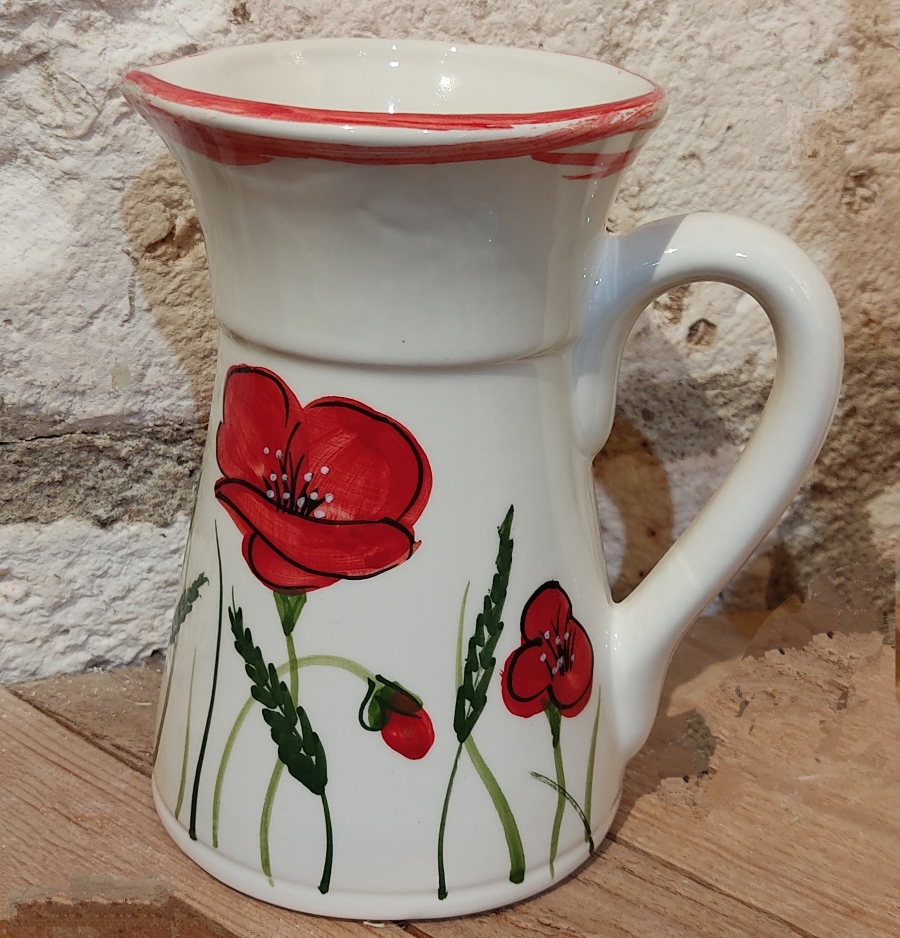 Céramique de fabrication artisanale, peinte à la main, décor coquelicots.